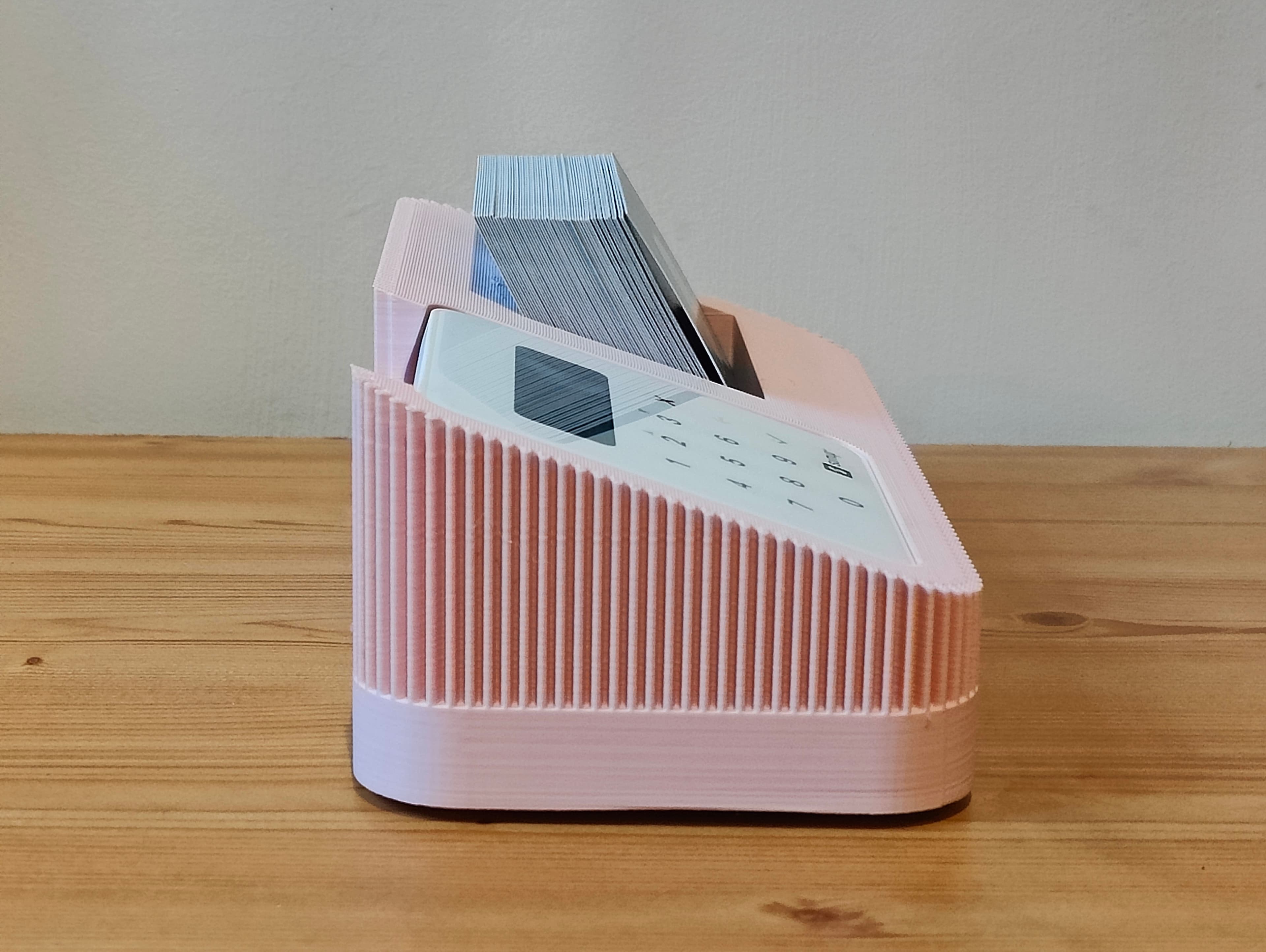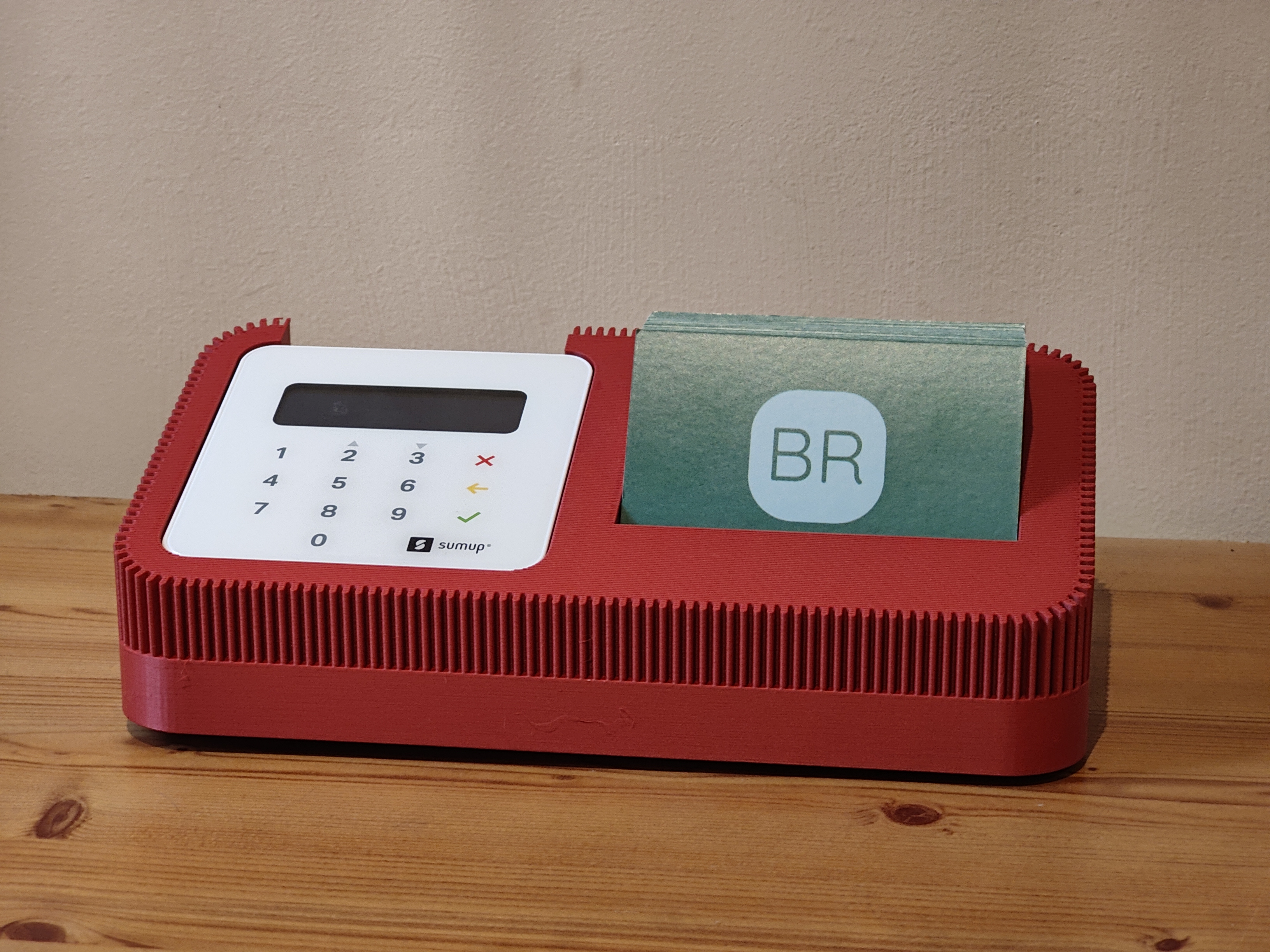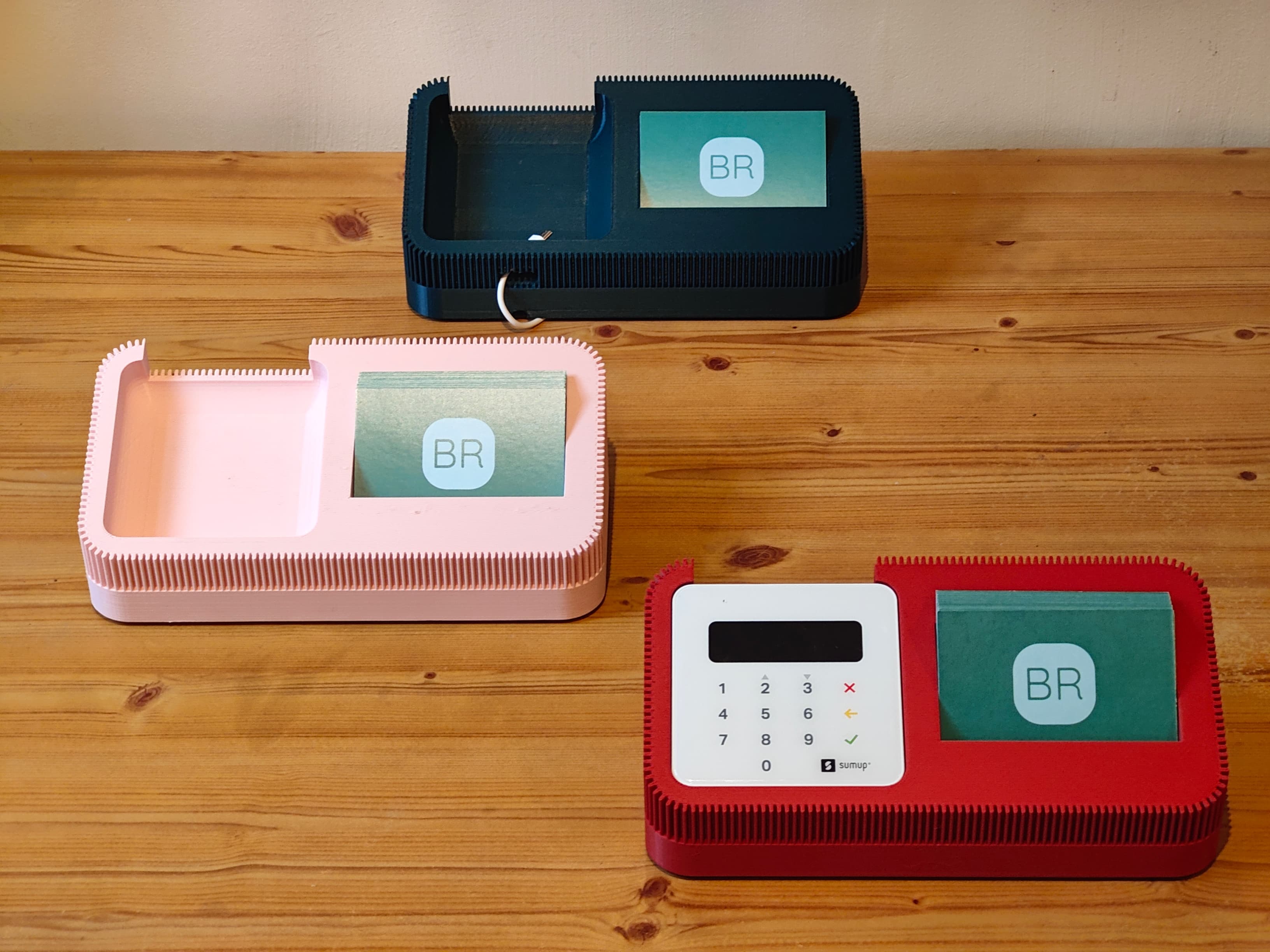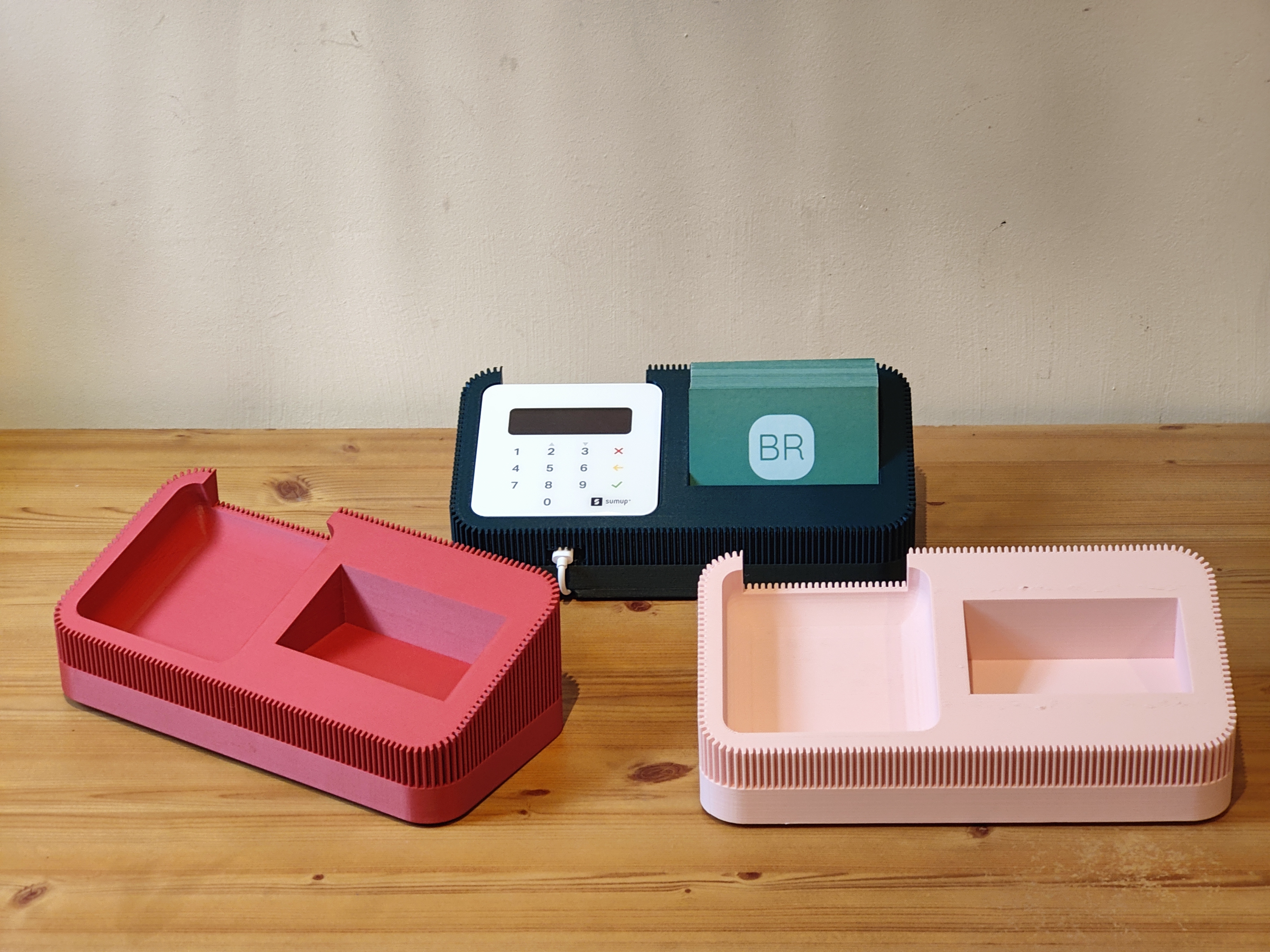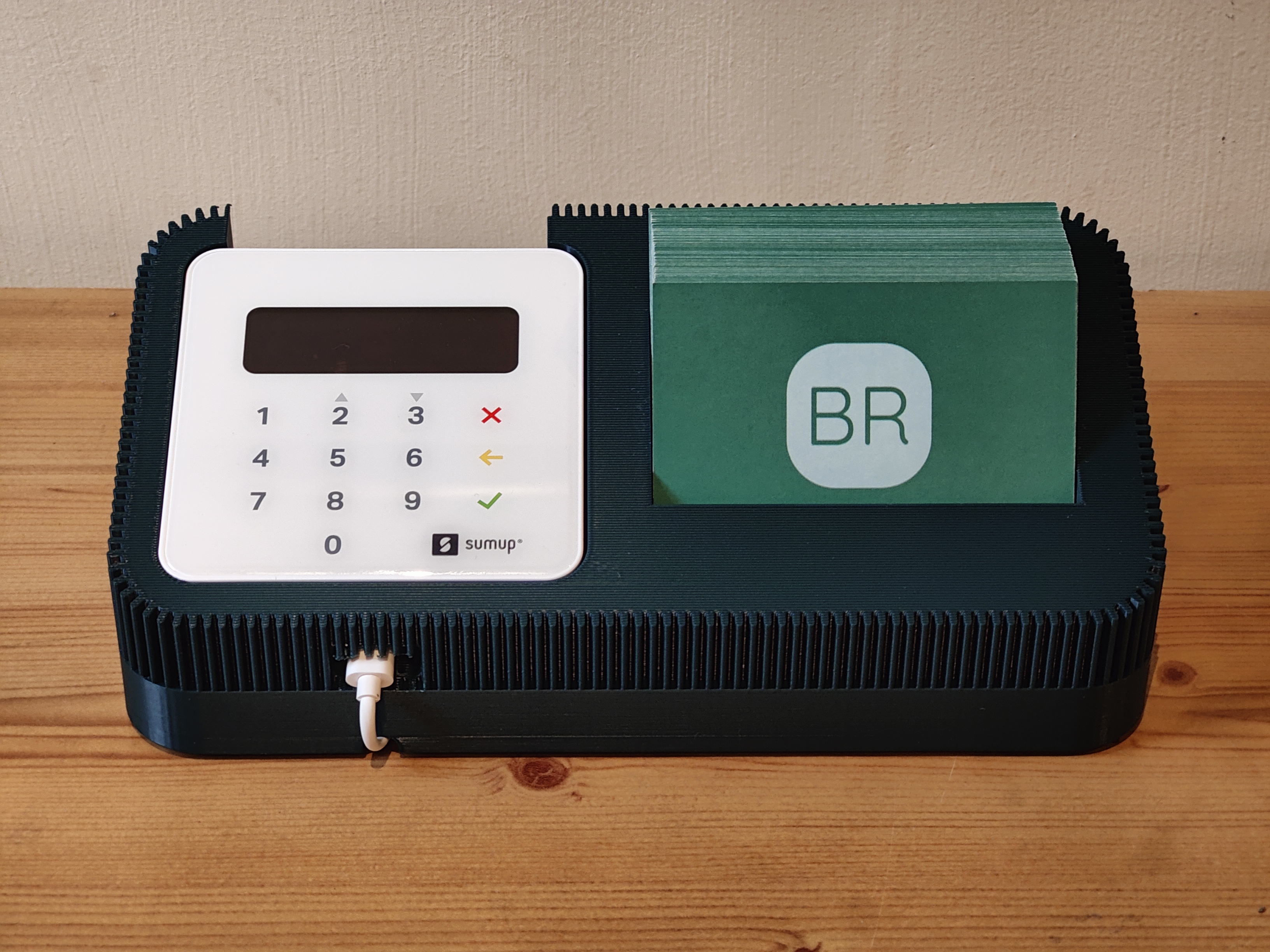 A stylish, modern dock designed to hold your SumUp Air card reader and business cards in one elegant setup. Perfect for businesses and professionals who want to create a premium, seamless checkout experience. Available in multiple colours to match your branding, with an optional charging slot and underneath cable run to power your SumUp Air while it’s docked.
